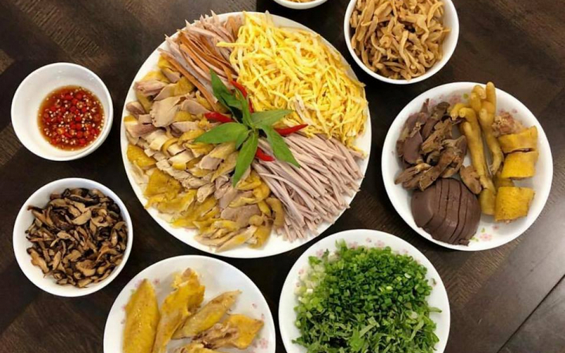 - Hành lá, rau răm, hành khô và gừng nướng, nấm hương, củ cải khô
