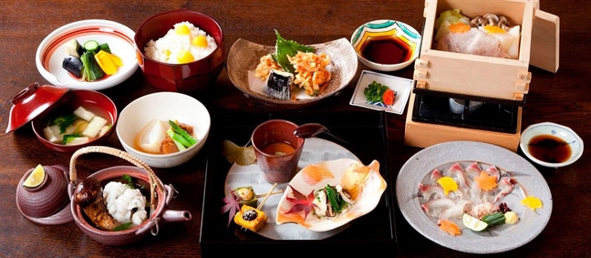 Văn hóa ẩm thực Nhật Bản luôn chú trọng vào việc trình bày và mặc dù các phần ăn rất nhỏ, cung cấp một bữa ăn đủ no. Người Nhật tuân theo nguyên tắc thưởng thức đồ ăn từ từ. Mỗi món ăn đều có đĩa riêng và thức ăn được trình bày để thể hiện vẻ đẹp tự nhiên.