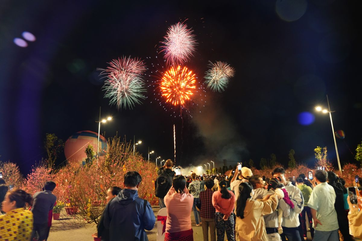 Điểm nhấn cảm xúc của chuỗi ngày hẹn hò rơi vào tối 15/2 khi bầu trời Cần Giờ bừng sáng với màn pháo hoa tầm cao rực rỡ. Những chùm ánh sáng bung nở trên nền trời biển, phản chiếu xuống mặt nước lấp lánh, tạo nên khoảnh khắc vừa choáng ngợp vừa lãng mạn. Giữa tiếng reo vui và ánh sáng ngập tràn, lời hẹn ước trao nhau trở nên đáng nhớ hơn bao giờ hết, như một dấu mốc khép lại Valentine theo cách rất riêng.