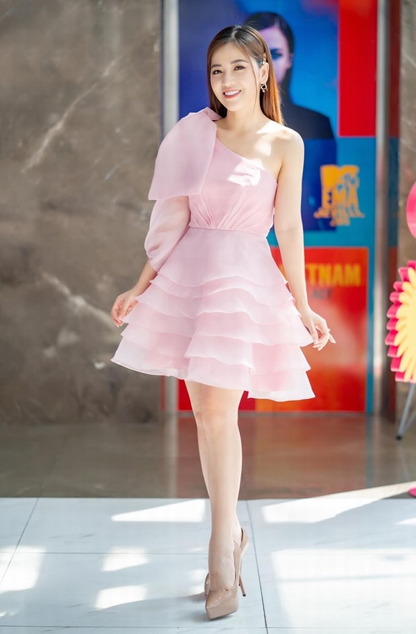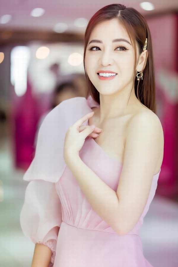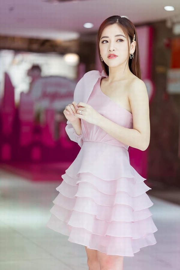 Trong lần xuất hiện này, cô khéo léo chọn chiếc đầm màu hồng nhạt, khoe một bên vai gợi cảm. Bộ trang phục giúp Puka thêm phần rạng rỡ, tôn lên làn da trắng mịn.