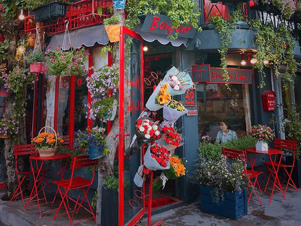 Bonjour Café The Art nằm trên đường Thảo Điền (Q.2) xứng đáng được xếp vào danh sách “phải ghé 1 lần” cho tất cả những ai lãng mạn, yêu thích thiên nhiên. Quán có tông màu đỏ rất nổi bật, hoa tươi tràn ngập khắp mọi nơi, khách có thể vừa uống cà phê vừa thỏa thích ngắm nhìn những bông hoa tươi thắm và thơm ngát.