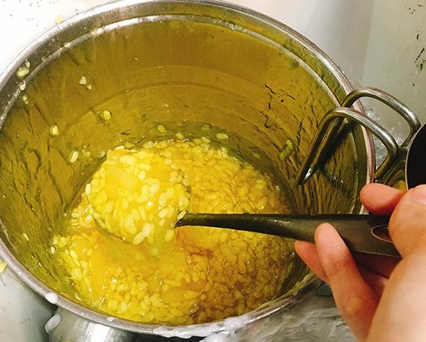 Nếu như mỗi quán chè ở Sài Gòn đều sặc sỡ với hàng chục vị chè khác nhau thì cả ‘gia tài’ chè bưởi của cô Lệ lại chỉ là hai nồi inox con: một bên là phần bưởi, đậu xanh sánh mịn, một bên là cốt dừa trắng phau béo ngậy. Chỉ có thế thôi mà mở bán từ 3 giờ chiều đến tối, mỗi ngày cô phải bán hết 5 – 6 nồi chè bưởi.