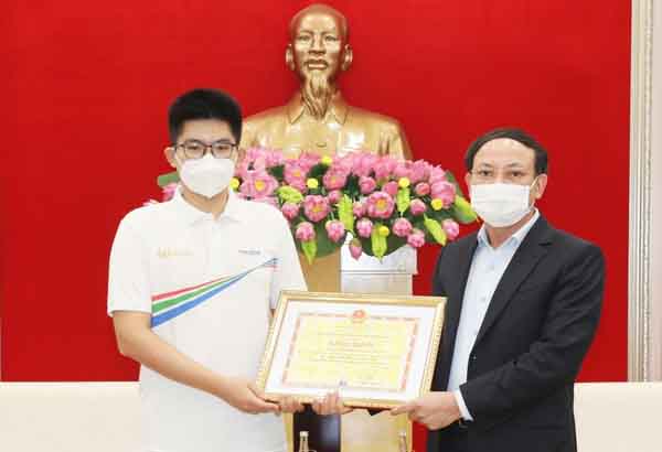 Nguyễn Hoàng Khánh được lãnh đạo tỉnh Quảng Ninh tặng bằng khen kèm 100 triệu đồng sau khi trở thành quán quân Đường lên đỉnh Olympia.