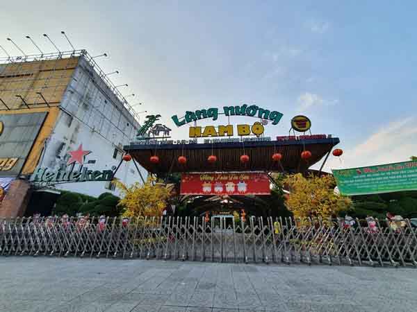 Làng nướng Nam Bộ là địa điểm nổi tiếng để tụ họp ăn uống gần ngã tư Thành Thái – Tô Hiến Thành (quận 10) cũng ngừng hoạt động sau lệnh từ thành phố