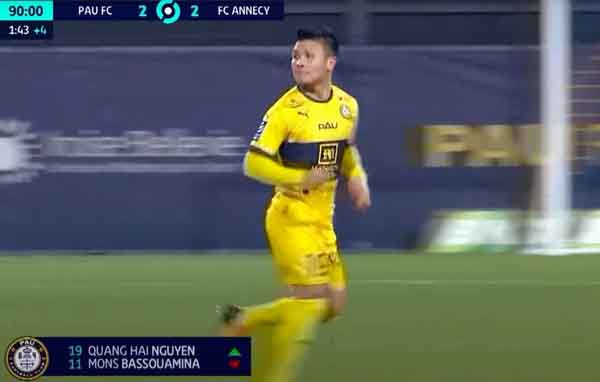 Trong trận đấu với Annecy, đến tận phút 90+2 thì Quang Hải mới được HLV Didier Tholot thay vào sân khi tỉ số đang hòa 2-2. Tính từ ngày 22/10/2022 đến nay, nam tiền vệ đội tuyển Việt Nam mới được ra sân thi đấu chính thức. Nhưng chỉ vào sân trong những giây phút bù giờ cuối cùng, Quang Hải thậm chí chẳng chạm được vào bóng một lần nào.
