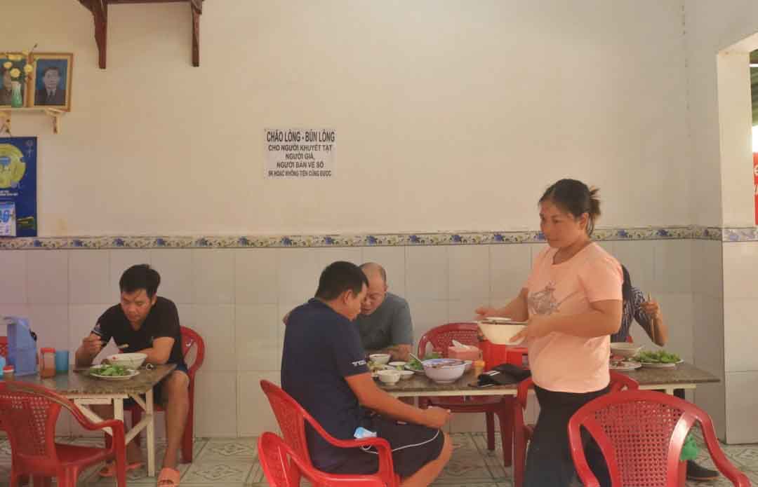 Quán cháo lòng mang đầy tình thương của hai vợ chồng anh Trần Văn Hòa (47 tuổi) và chị Trần Thị Dung (36 tuổi) luôn mở rộng cửa chào đón tất cả thực khách, cả những lao động nghèo và người khuyết tật bán vé số không có tiền.