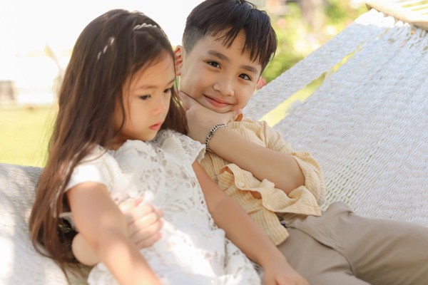 Hay trong những hình ảnh mới được chia sẻ, bé Sol và bé Andy tiếp tục khoác vai vui vẻ. Sự ngây thơ, trong trẻo và hồn nhiên của các bé khiến Thu Trang phải bật cười thích thú. Bộ ảnh này được ghi lại khi các gia đình nổi tiếng cùng đến khu nghỉ dưỡng quay hình cho chương trình Thử thách lớn khôn.