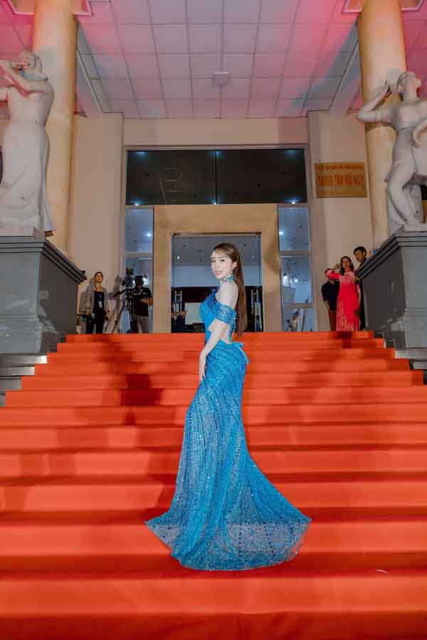 Tinh tế kết hợp cùng lối trang điểm ngọt ngào và mái tóc thả dài tự nhiên, Quỳnh Nga được khán giả gọi là “nàng tiên cá của thảm đỏ”.