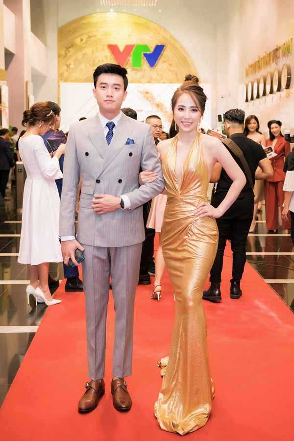Nữ diễn viên gây chú ý trên thảm đỏ VTV Award khi diện một thiết kế dạ hội màu vàng gold lộng lẫy khoe trọn lưng trần óng ả, cùng phần ngực xẻ sâu cực kỳ quyến rũ.