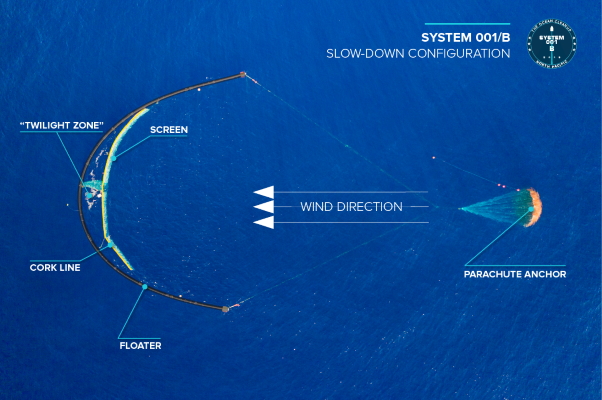 Hệ thống được thiết kế theo hình chữ U dài 600m, dựa vào sức gió di chuyển để thu gom rác nổi trên đại dương và nhiều lần được sửa đổi, nâng cấp. Mới đây, các kỹ sư đã thêm vào chiếc dù bay giúp điều chỉnh tốc độ nhanh chậm của hệ thống, đồng thời đặt thêm một tấm màn nhằm hạn chế việc rác lọt ra ngoài. Theo Ocean Cleanup, thiết kế hiện nay không chỉ giúp thu gom những rác thải cỡ lớn như các tấm lưới đánh cá bị vứt bỏ và các vật thể bằng nhựa lớn mà gom được cả các hạt vi nhựa có kích cỡ nhỏ đến khoảng 1mm.