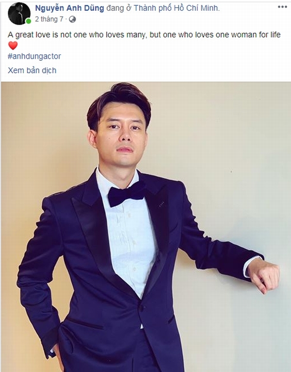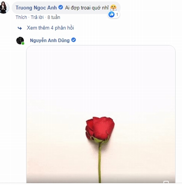 Không chỉ đồng hành trong các sự kiện và cuộc sống đời thường, Trương Ngọc Ánh và Anh Dũng cũng thường xuyên tương tác trên mạng xã hội. Ngay khi Anh Dũng đăng dòng trạng thái ẩn ý của về người phụ nữ của đời mình, Trương Ngọc Ánh đã vào bình luận khen nam diễn viên và nhận lại đóa hồng từ nam diễn viên.