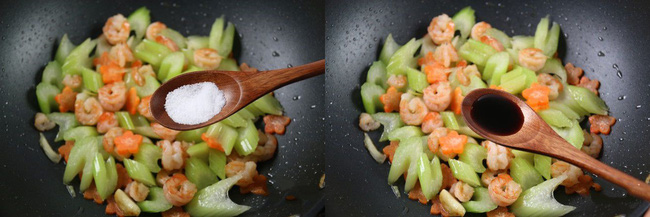 Thêm tôm vào đảo đều cùng chút muối và nước tương cho thấm gia vị là hoàn thành.