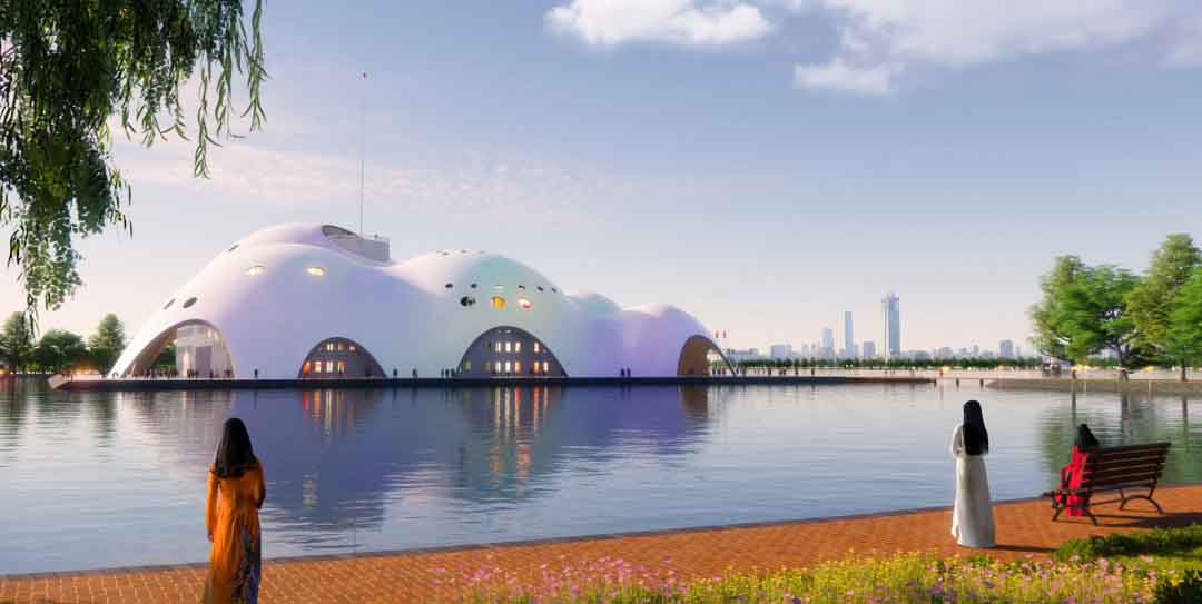 Đặc biệt, mái vòm sử dụng hiệu ứng ngọc trai để tôn vinh vẻ đẹp dung dị, nguyên bản và thuần khiết của thiên nhiên. Hồ Tây gắn liền với những khoảnh khắc đã đi vào thơ ca và tâm khảm của người Hà Nội, và ngọc trai sẽ phản ánh sự chuyển động đó của thời gian trên mái vòm. Nhà hát Opera vì thế sẽ kể câu chuyện Hồ Tây, với những khoảnh khắc diệu kỳ, khi tím mờ, khi bảng lảng sương khói, lúc phản chiếu ánh cam rực rỡ của mặt trời…