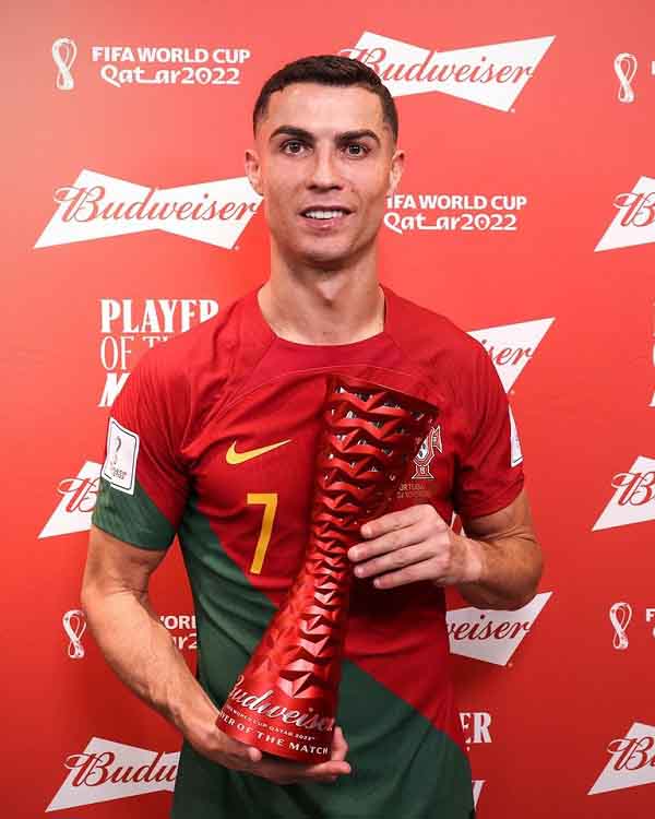 Ngoài ra, sau trận đấu này, Cristiano Ronaldo được bình chọn là cầu thủ xuất sắc nhất trận. Cựu cầu thủ Real Madrid tiếp tục tạo nên kỷ lục mới khi có 7 lần đoạt được danh hiệu “cầu thủ xuất sắc nhất trận” trên các kỳ World Cup