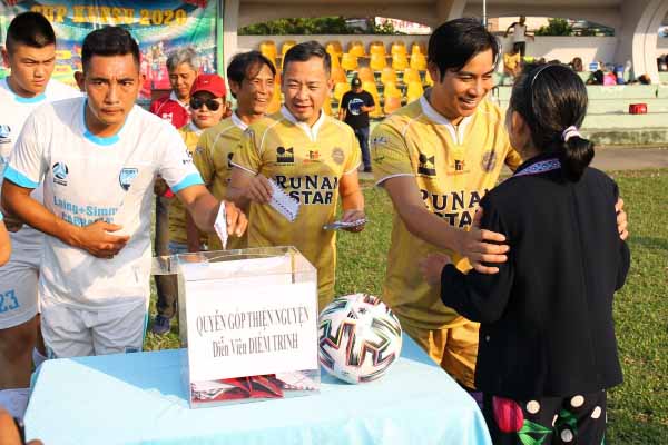Giờ là lúc kể lại một câu chuyện cũ. Vốn trước đây, chúng tôi có tổ chức một trận đấu quyên góp cho nghệ sĩ Lê Bình, lúc ấy đang trong tình trạng nguy cấp. Trận cầu thu về được 38 triệu đồng. Nhưng chưa kịp trao gửi tấm lòng thì anh Bình không may qua đời. Vì nhiều lý do tế nhị, chúng tôi đành phải giữ số tiền ấy lại cho đến tận bây giờ. Và hôm nay, sau trận cầu đầu tiên của năm 2020, sau khi bàn bạc kỹ lưỡng, RuNam Star United quyết định trao luôn 38 triệu đồng ấy cho chị Diễm Trinh. Và tổng số tiền mà chúng tôi gửi đến chị Trinh với ước mong sức khỏe chị sẽ tốt hơn là 58.850.000 đồng.