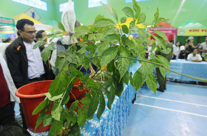 Ông Hồ Văn Liêm, xã Trà Linh mang cây sâm năm năm và bảy năm tuổi đến dự thi. “Tôi trồng trên núi Ngọc Linh hàng nghìn cây nhưng chọn hai cây củ to, rễ phát triển đều, lá và thân to”, ông Liêm nói.