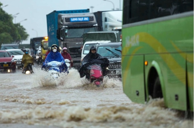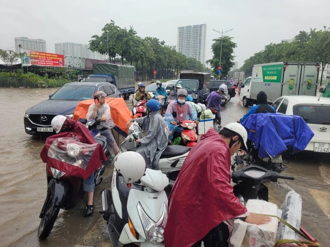 Cơn mưa tầm tã đã khiến nhiều người bất lực “chôn chân” trên đường.