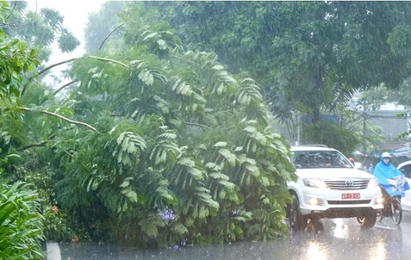 Không chỉ vậy nhiều nơi cũng bị gãy đổ cây xanh do mưa to và gió giật.