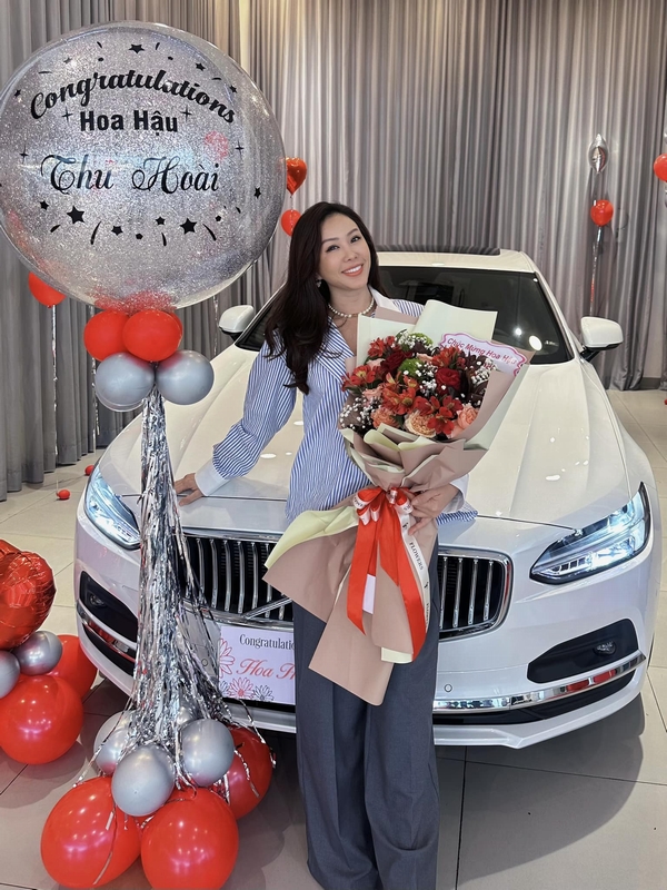 Hoa hậu Thu Hoài khoe quà khủng là một chiếc xế xịn được tặng nhân ngày 8/3 nhưng sau đó vài ngày cô mới có thể đến nhận và check-in.