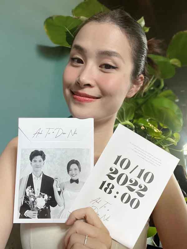 Đông Nhi hào hứng khoe ảnh thiệp cưới của “em gái ruột” Diệu Nhi. Trên trang cá nhân, giọng ca “Vì ai vì anh” gây chú ý với lời nhắn nhủ vô cùng hài hước: “Cuối cùng đã đến ngày trọng đại của em gái ruột của chị. Quá tam ba bận, chị mong em gái giữ thật chặt tóc giả của mình sau đêm tiệc nhé. Chúc mừng cô dâu mới xinh đẹp”.