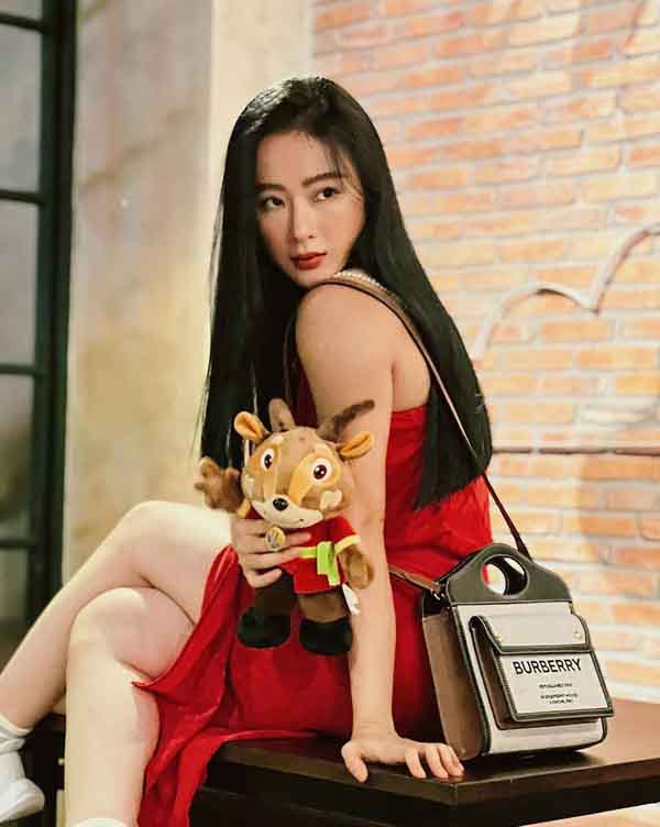 Angela Phương Trinh diện váy đỏ rực tay cầm linh vật Sao la của SEA Games 31, đồng thời khẳng định mình “Forever Alone”.