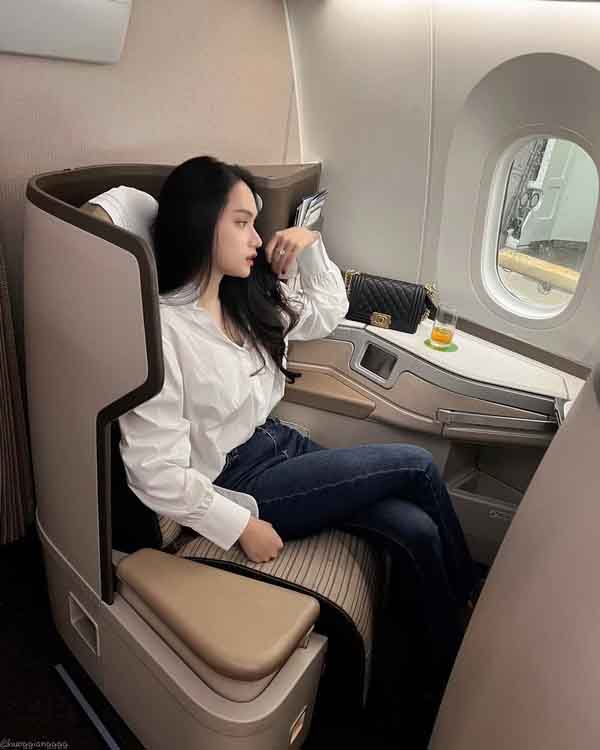 Hoa hậu Hương Giang đăng ảnh với phong cách thời trang đơn giản trên máy bay, cập nhật lịch làm việc của mình. Chuyến bay của Hương Giang sẽ đáp tại Hà Nội.