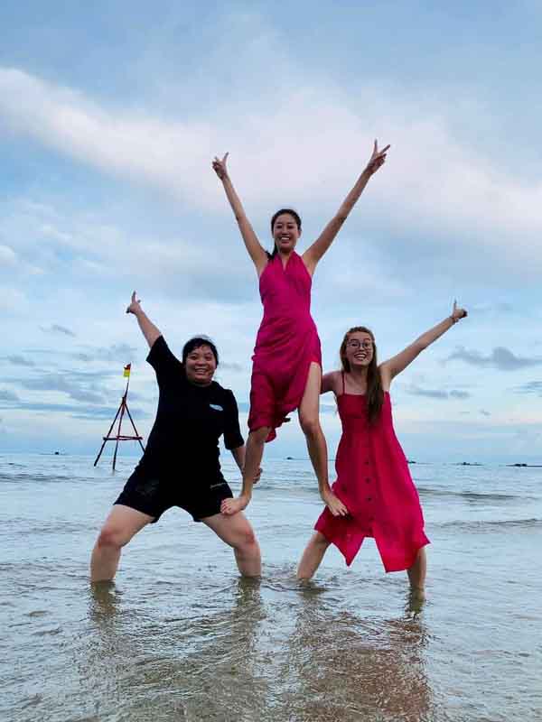 Hoa hậu Nguyễn Trần Khánh Vân (ở giữa) khiến người hâm mộ và cư dân mạng vô tình lướt ngang qua không khỏi bật cười khi nhìn thấy những bức ảnh được cô nàng Hoa hậu “nhiệt tình” hướng dẫn “các cách tạo dáng chụp hình nhóm khi đi biển”.
