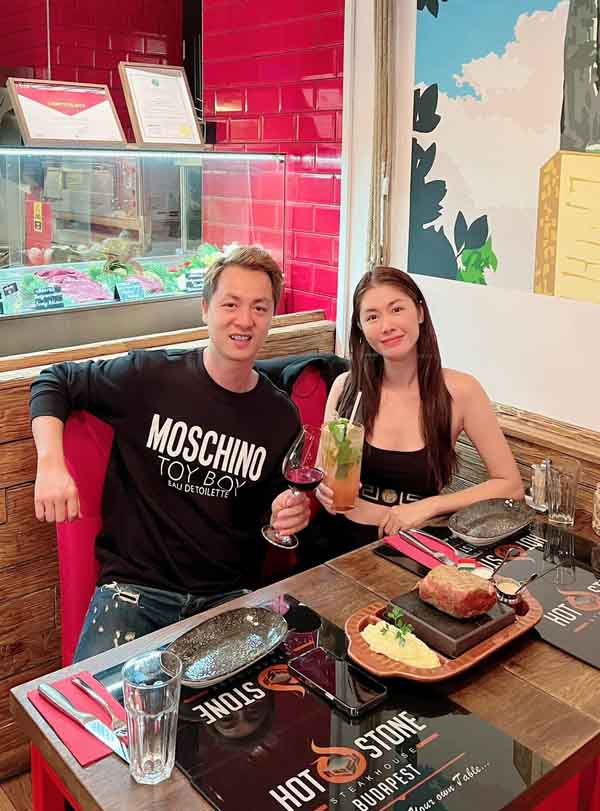 Đăng Khôi – Thủy Anh bất ngờ tung loạt ảnh tình tứ trong chuyến du lịch Châu Âu vừa qua. Người hâm mộ được dịp ngỡ ngàng trước cuộc sống sang chảnh của vợ chồng giọng ca “Chỉ còn là giấc mơ”. Song, bà xã Đăng Khôi còn tiết lộ, dù đã nếm thử nhiều món bít tết ở các nước Châu u, thế nhưng chỉ mỗi nam ca sĩ là phù hợp với khẩu vị của cô. Cụ thể, người đẹp viết: “Sáng cà phê New York, chiều cà phê Anna, tối thì xem pháo hoa, đêm về lại bò bít tết. Đợt mình đi đúng Quốc khánh ở Hungary, may mắn được xem bắn pháo bông hoành tráng dã man bên bờ sông Danube. Sau khi đi các nước, nơi nào cũng đòi gọi bò bít tết mà chưa thấy nơi nào ngon như ông Khôi làm”.