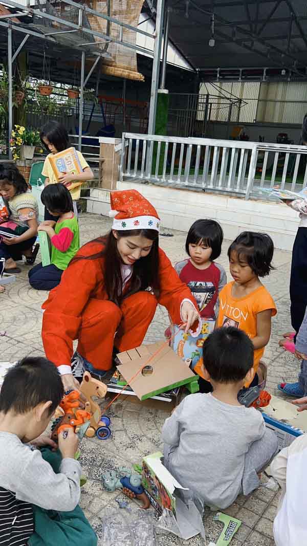 Á hậu Quỳnh Châu trong diện mạo “Ông già Noel” phát quà cho những em nhỏ tại trại trẻ mồ côi: “Châu luôn suy nghĩ như vậy cho tới bây giờ khi đã lớn vẫn luôn nuôi trong mình một đứa trẻ tin vào điều đó. Vì niềm tin đó giúp Châu luôn chọn làm điều đúng trong cuộc đời mình, vì niềm tin đó giúp Châu cố gắng làm thật nhiều điều tốt vì tin đâu đó có ông già Noel vẫn đang dõi theo. Đó là lý do vì sao Châu luôn muốn làm ông già Noel cho những đứa trẻ xung quanh mình. Một ngày giáng sinh thật ý nghĩa khi Châu cùng người thân đến trại trẻ mồ côi Tân Văn phát quà Noel. Cùng chơi với các em, chính mình cũng cảm thấy thật hạnh phúc”.