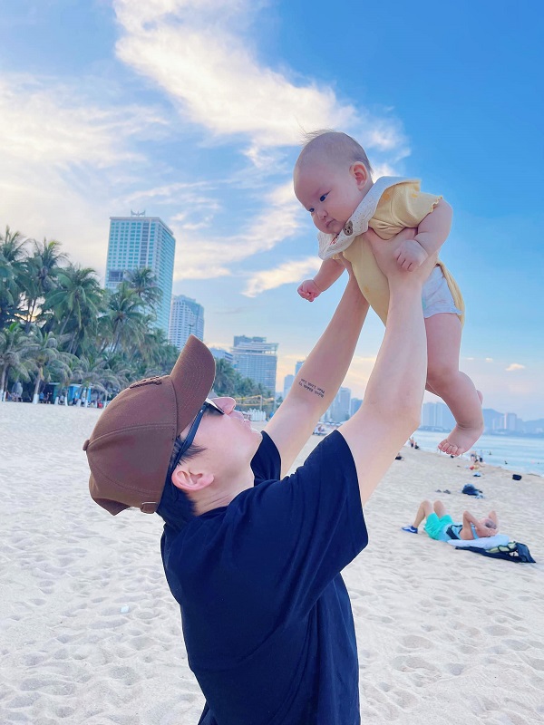 Bà xã Phan Mạnh Quỳnh chia sẻ khoảnh khắc ngọt ngào của hai bố con khi chơi đùa cùng nhau.