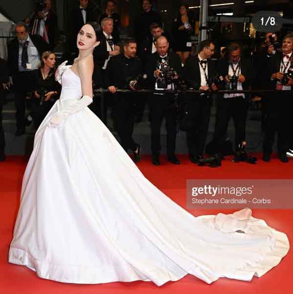 Hoa hậu Hương Giang lộng lẫy trong bộ váy trắng trên thảm đỏ Cannes 2022.