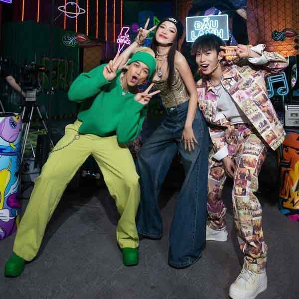 Chi Pu cùng hai huấn luyện viên Kay Trần và Trọng Hiếu chụp ảnh nhí nhố sau hậu trường chương trình Street Dance Việt Nam (Đây chính là nhảy đường phố).