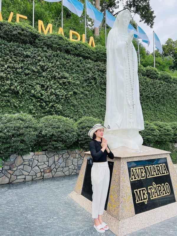 Diễn viên Kha Ly đăng tải ảnh đi du lịch cùng gia đình với mong muốn cầu bình an tại Đức Mẹ TàPao, tỉnh Bình Thuận.