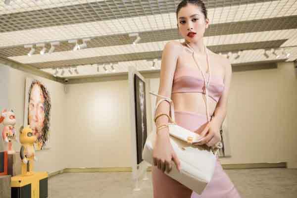 Hoa hậu Trần Tiểu Vy thả dáng sang trọng trong không gian triển lãm nghệ thuật.