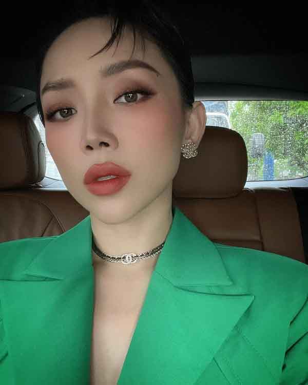 Ca sĩ Tóc Tiên thần thái trong bộ vest màu xanh muốn được làm “một nhành hoa, một cành lá”.