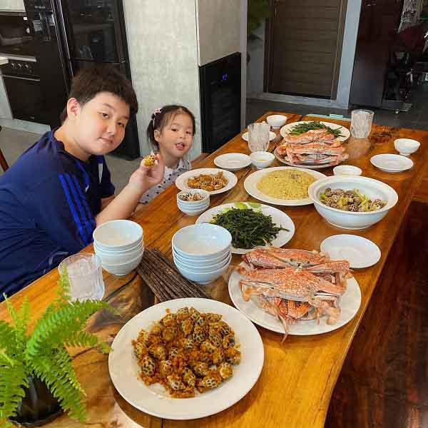 Lê Phương khoe 2 con Cà Pháo và bé Bông thân mật dùng bữa với nhau. Được biết, bữa ăn thịnh soạn được đích thân nữ diễn viên vào bếp nấu.