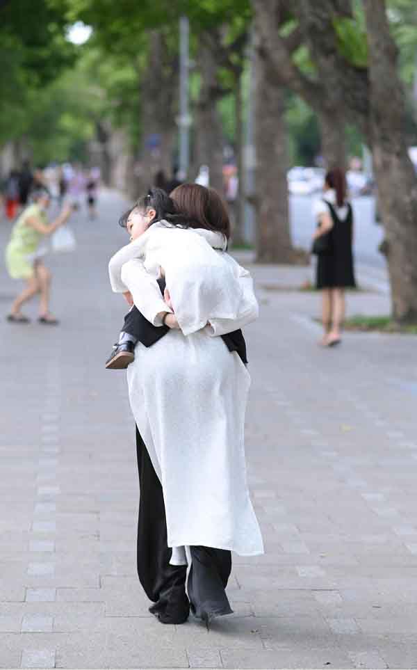 Pha Lê cõng con gái nhắn nhủ đến cô bé đầy ngọt nagào: “Mặt trời của bắp thì nằm trên đồi. Mặt trời của mẹ, em nằm trên lưng. Mẹ ước gì có thể cõng em cả đời trên lưng mình”.