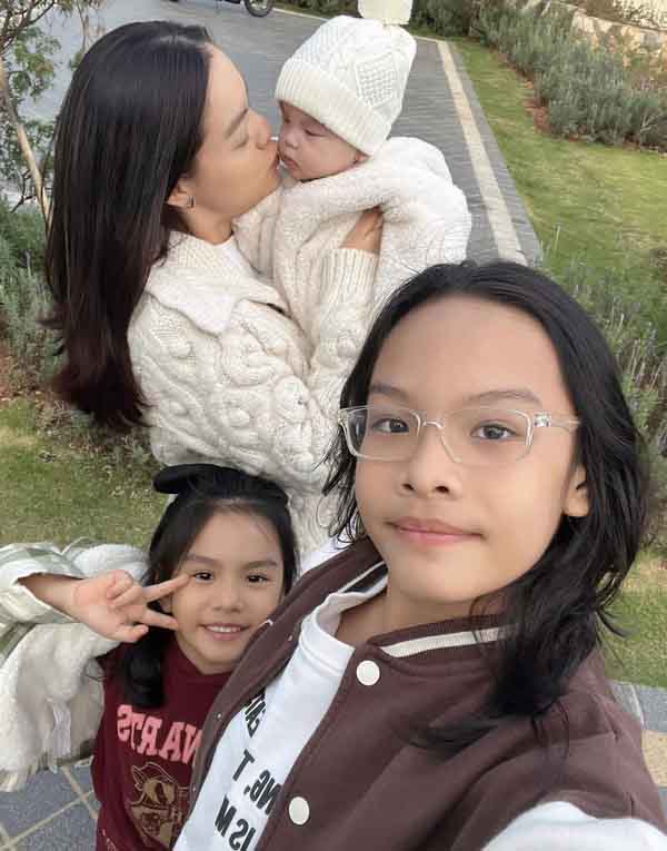 Vợ cũ Đan Trường cùng con trai hào hứng chào đón năm mới.