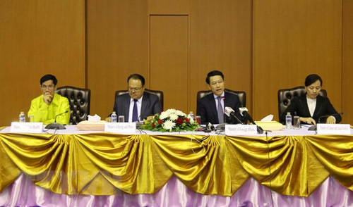 Ngọai trưởng Lào, thứ hai từ phải sang cho biết sẽ dừng các dự án thủy điện