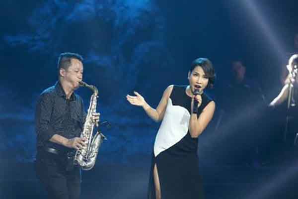 Saxophone Xuân Hiếu (trái) trên sân khấu cùng ca sĩ Mỹ Linh
