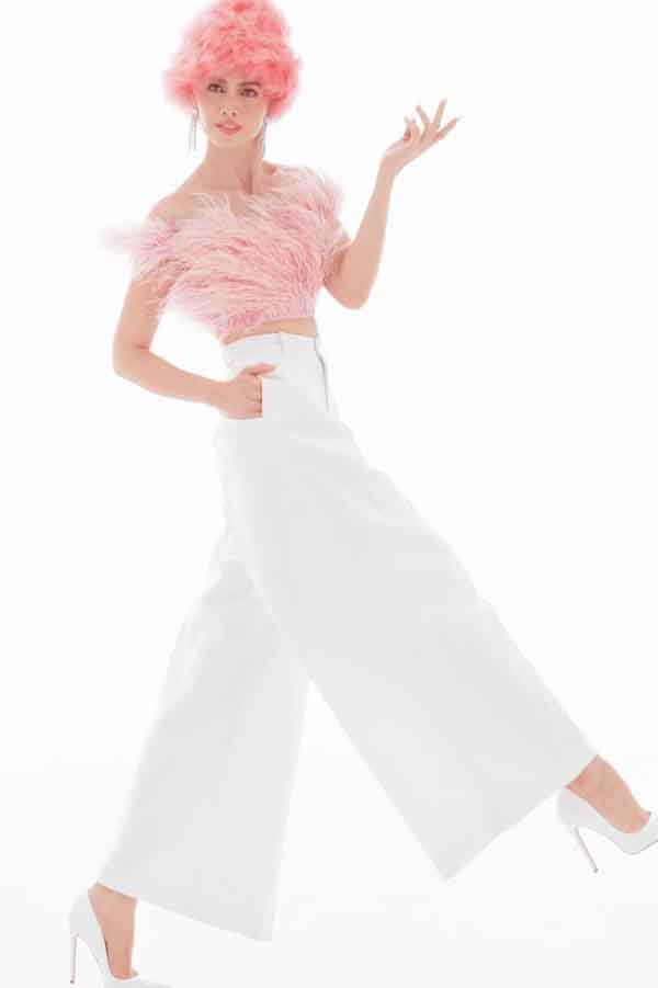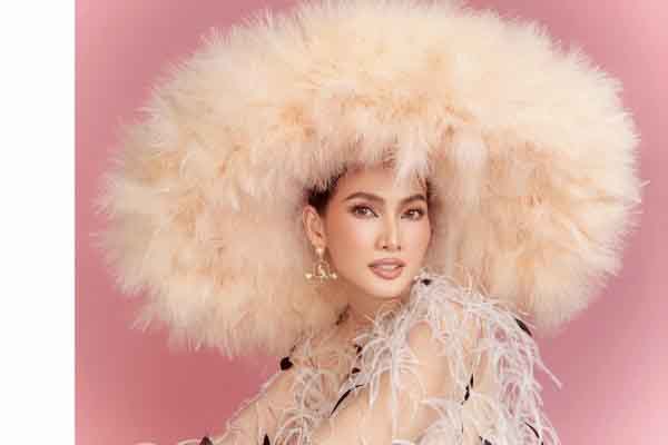 Thiết kế váy lông tôn lên đôi vai trần quyến rũ của Anh Thư. Nữ siêu mẫu kết hợp cùng nón và trang sức để hình ảnh thêm bắt mắt.