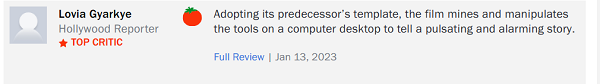 Lovia Gyarkye của Hollywood Reporter viết: “Áp dụng khuôn mẫu của Searching, bộ phim khai thác và vận dụng các công cụ trên màn hình máy tính để kể một câu chuyện đầy cảm xúc và đáng báo động”.