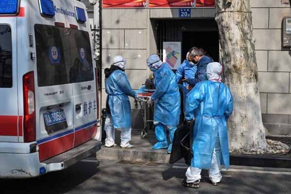Các nhân viên y tế chuyển bệnh nhân bị nhiễm virus corona tại Vũ Hán đến bệnh viện