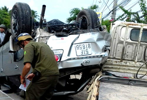 Sóc Trăng: Ô tô lật ngửa khiến bốn người bên trong sợ hãi