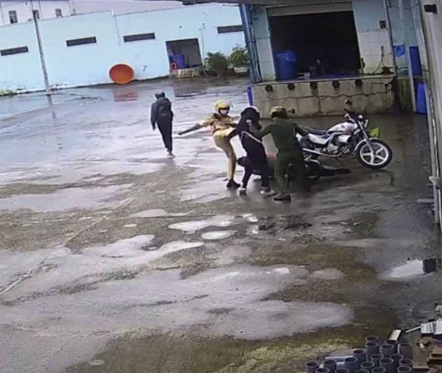 Trong khi đó, người bạn đi cùng thiếu niên bị đánh đã di chuyển ra xa cũng bị người mặc đồng phục công an đuổi theo, dùng mũ bảo hiểm đánh tới tấp. Một lúc sau, thêm 2 người chạy mô tô đến và một trong 2 người này đã đánh thiếu niên cầm lái.