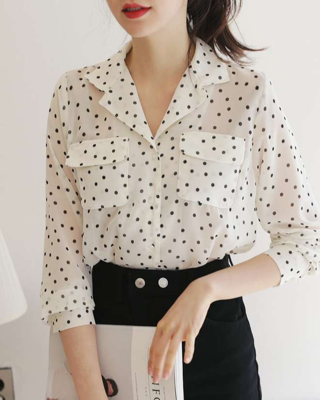 Bên cạnh sơmi trắng trơn màu như thông thường, bạn cũng đừng bỏ qua những mẫu sơmi họa tiết như áo chấm bi…