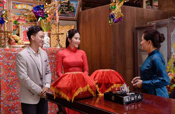 Chàng trai đi cùng Nam Em diện Âu phục, cả hai đã cùng nhau thắp nhang trước bàn thờ gia tiên, nhận lời chúc phúc của người thân trước khi Nam Em đi theo về nhà chồng.