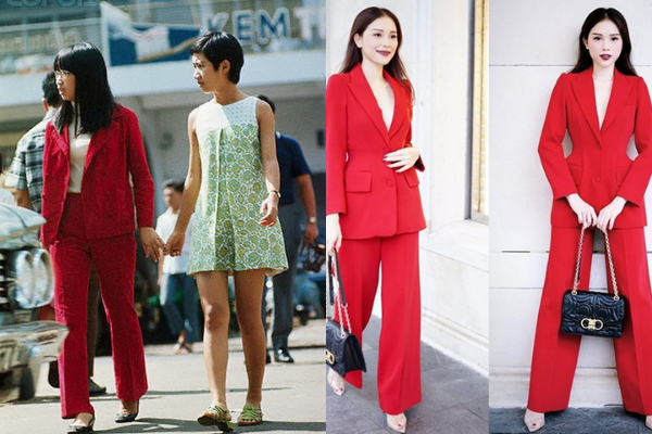 Thiếu nữ Việt tự tin khoác bộ Suit Le Smoking mang màu đỏ rực nổi loạn được Yves Saint Laurent sáng tạo để tôn vinh quyền lực phụ nữ mà thậm chí ở phương Tây lúc đó cũng ít người dám mặc.