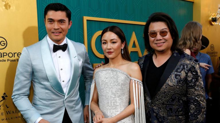 Kevin Kwan và 2 diễn viên chính trong ngày ra mắt phim “Con nhà siêu giàu châu Á”