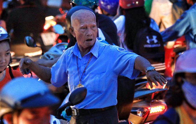 Chờ đợi quá lâu không thoát khỏi kẹt xe, ông lão nhân viên xe buýt xuống đường tham gia phân luồng. “Mỗi khi qua đây là một nỗi ám ảnh với chúng tôi. Rất khổ sở chú ơi!”, ông lắc đầu ngao ngán.